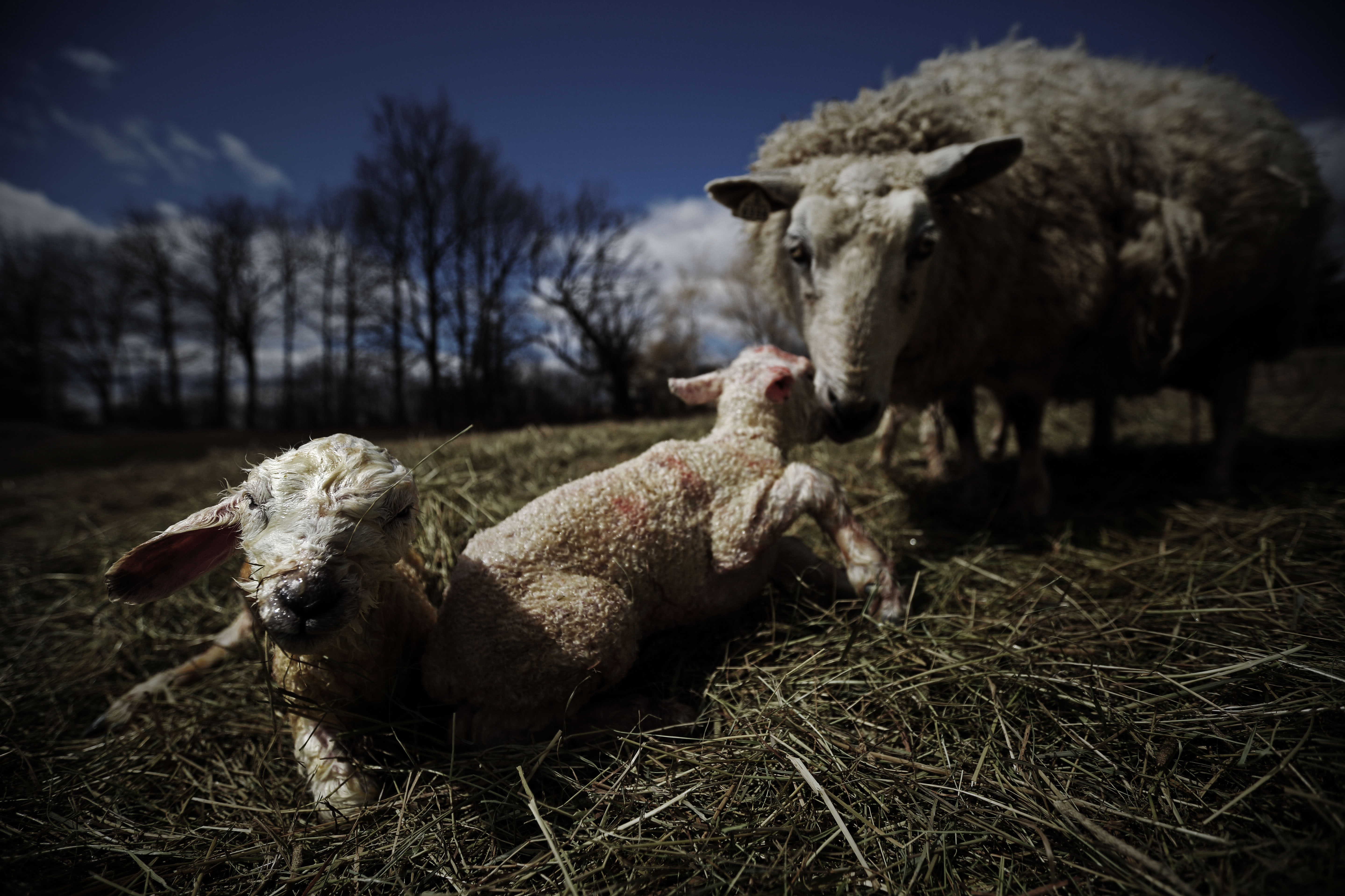 Minutes-old lambs in the spring sun. New Haven, VT. April 11, 2015.
